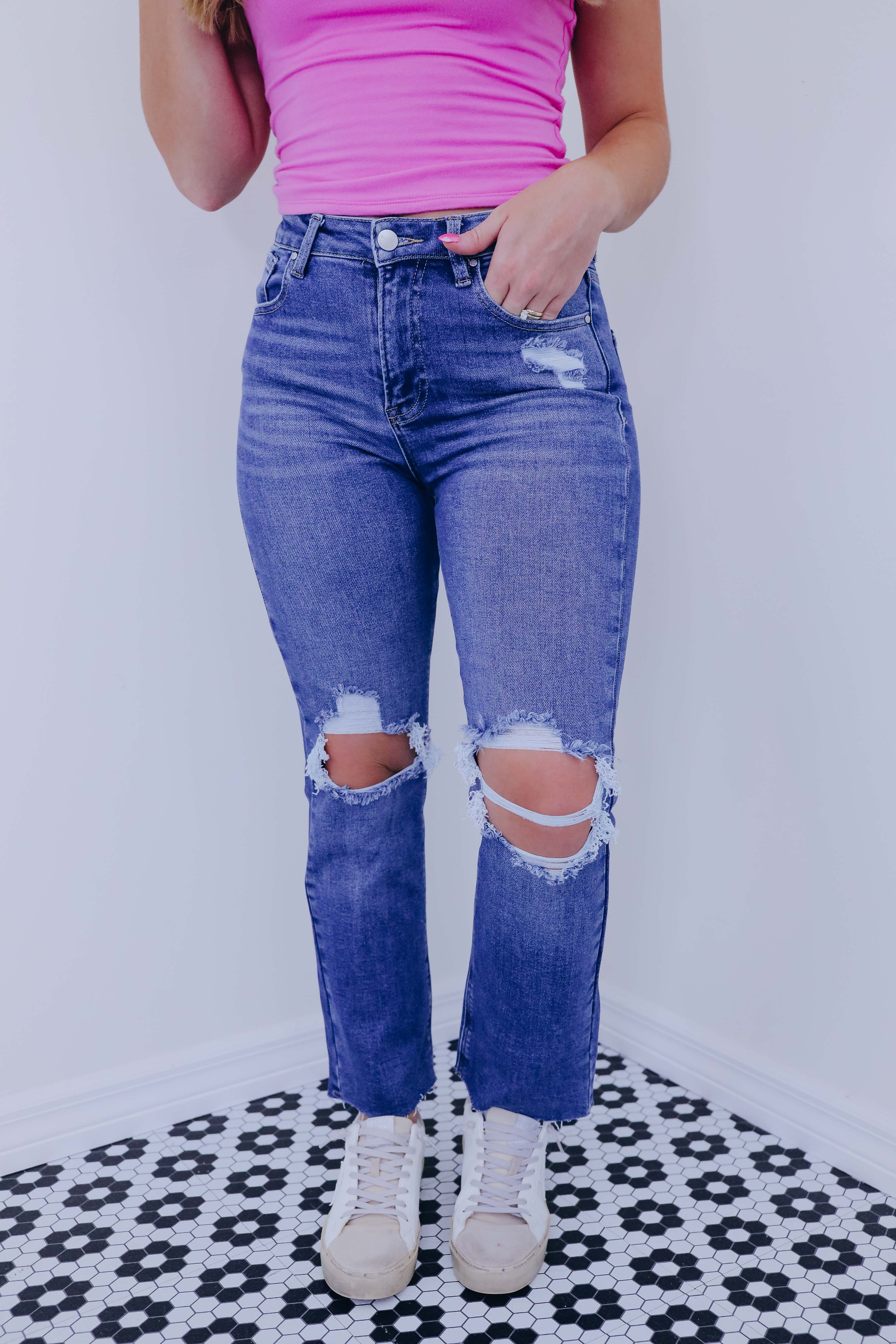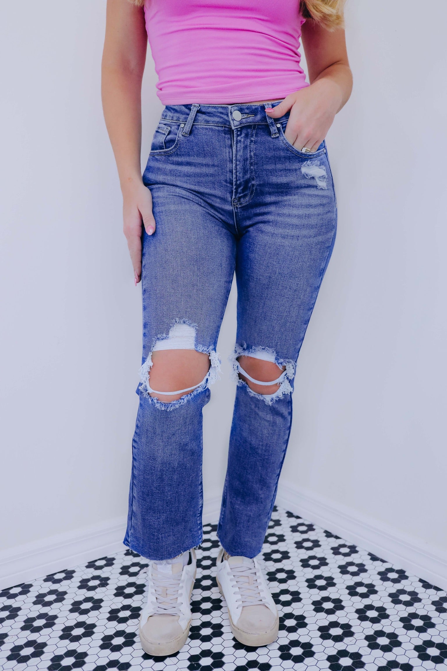 • Upgrade your wardrobe with our new Jordyn High Rise Distressed Jeans! Perfect and versatile for any occasion, you can't go wrong when choosing these! Pair with your fave heels for a more elevated look.