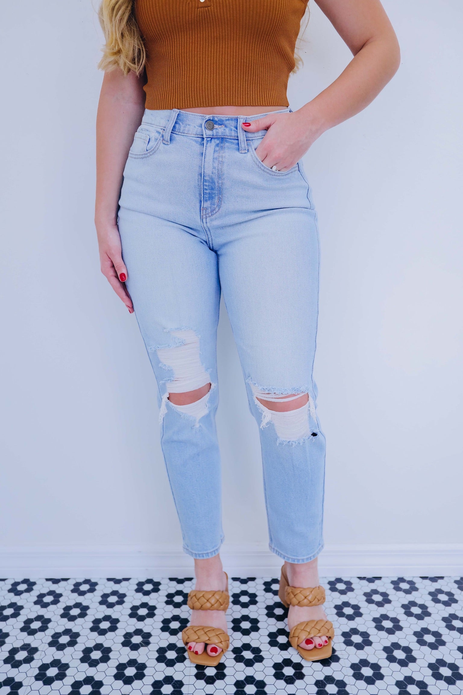 • Our Rory High Rise Straight Jean provides a versatile option for any outfit. These jeans are cute and durable, making them a must-have for your wardrobe.