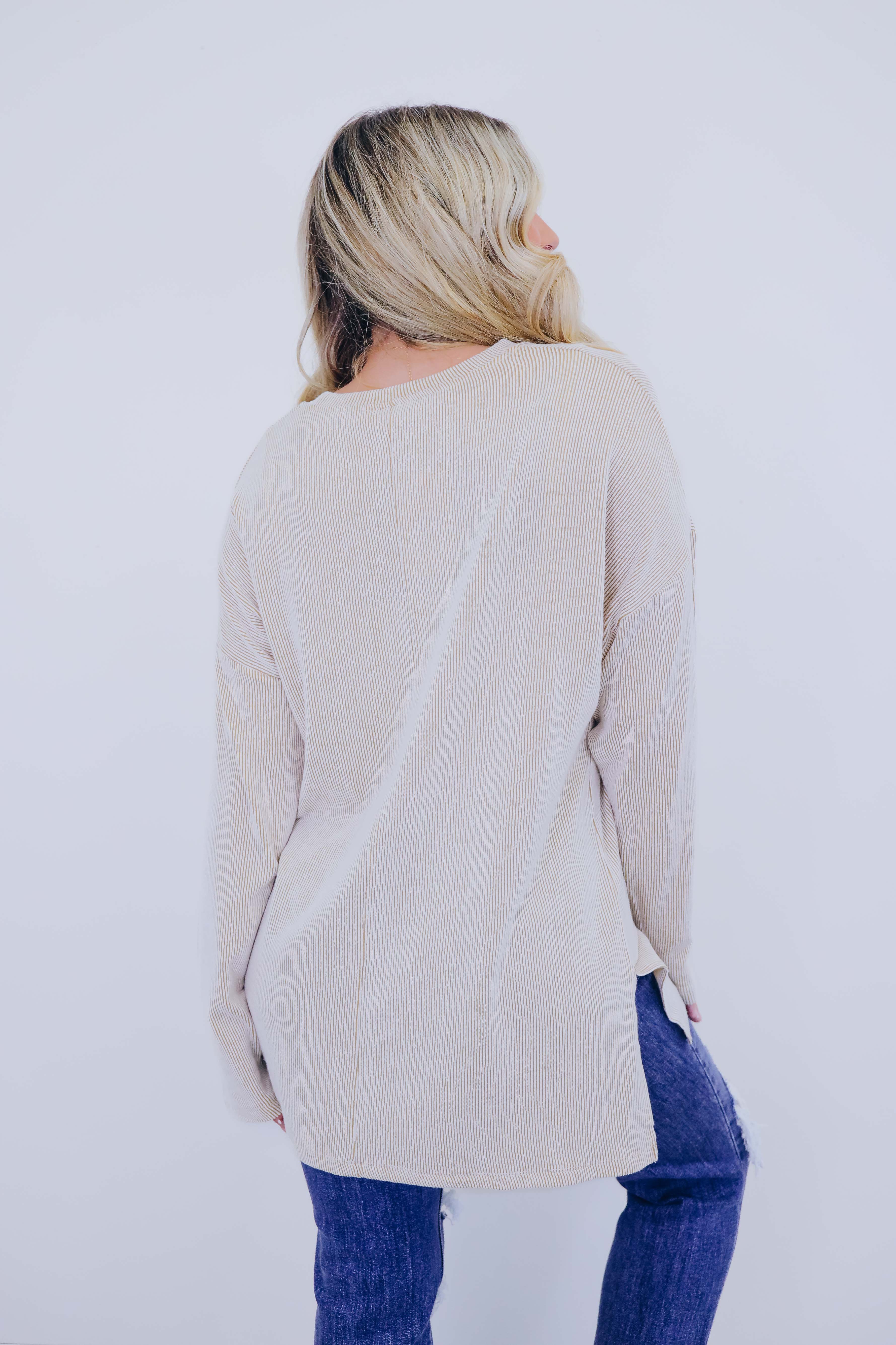 Hooray Sports Ribbed Graphic Tunic - Beige