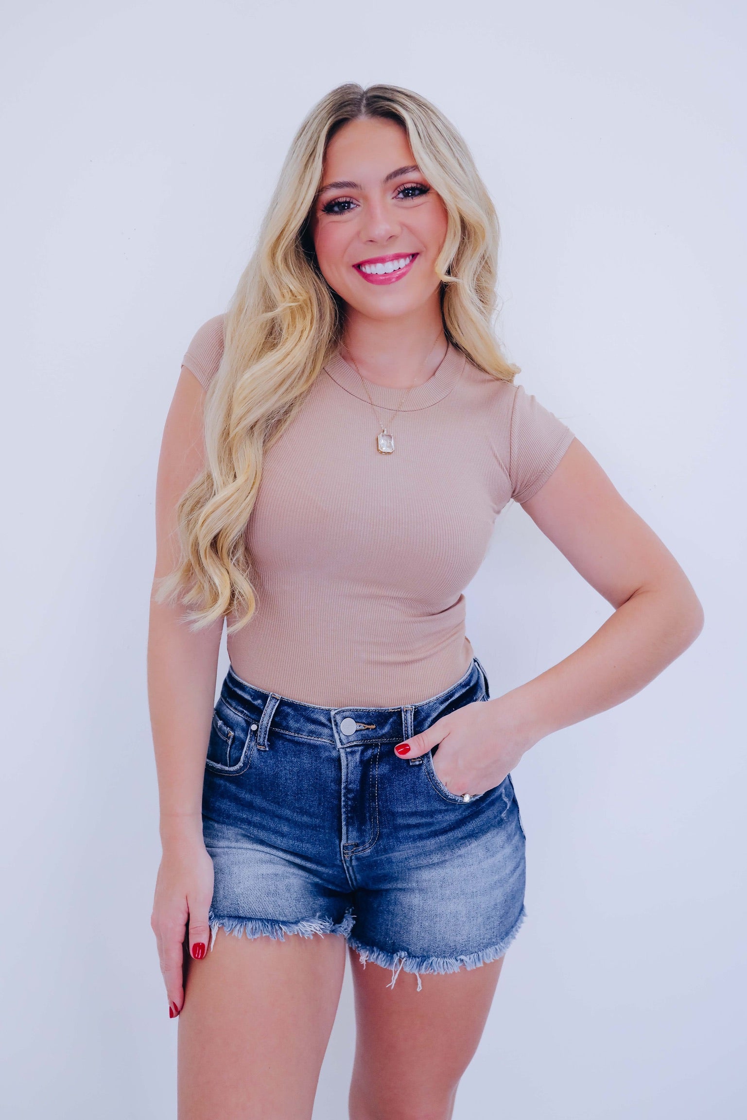 Simply Sweet Round Neck Bodysuit - Tan