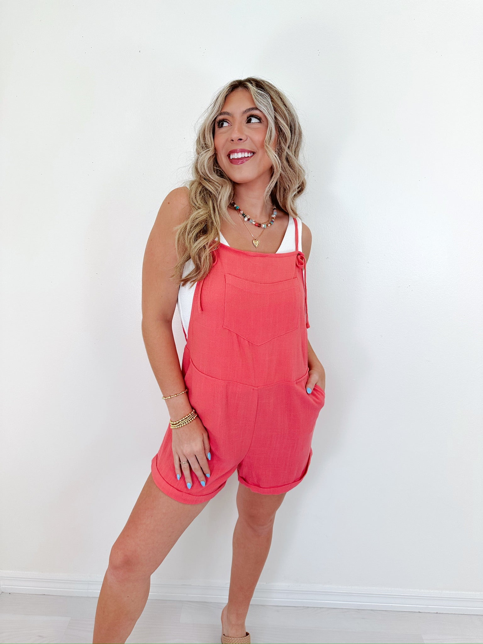 • Easy, laid-back, and made for comfort. Our Harbor Patch Pocket Bib Romper the ultimate summer one-and-done. This cutie just  needs a tank, tee, or bralette underneath and you're set.