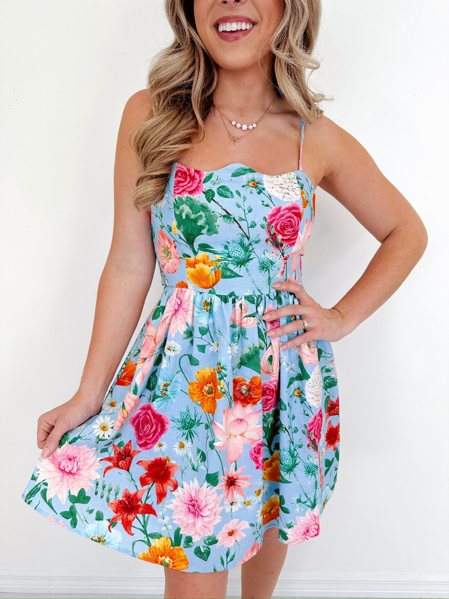 Maribelle Bloom Mini Dress - Lt Blue/Multi