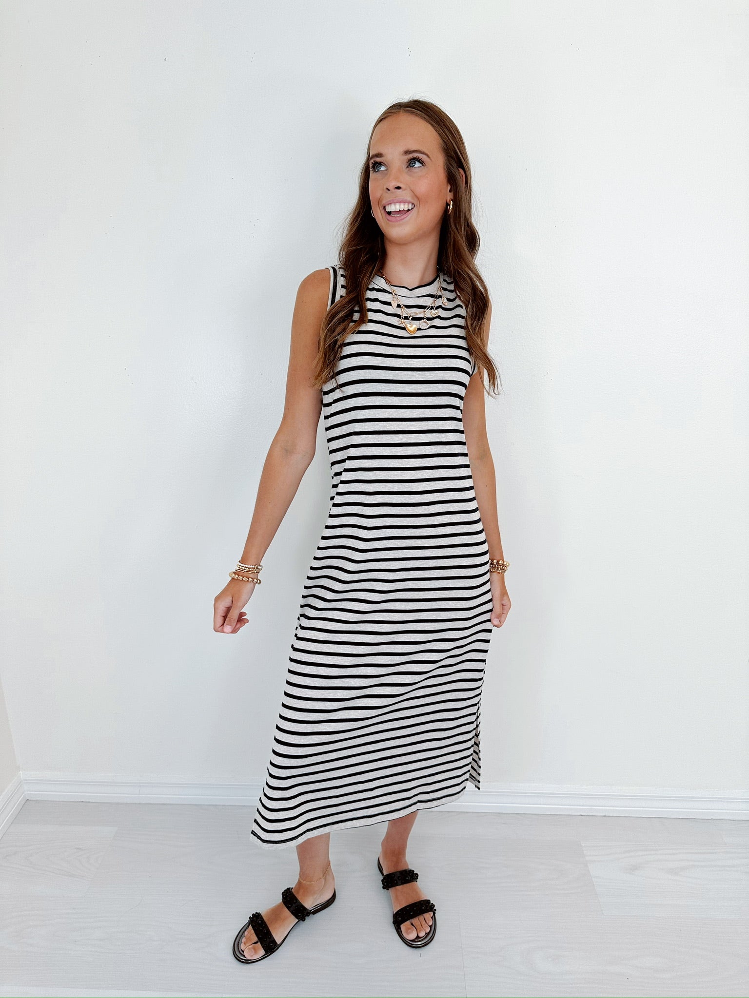 • Effortlessly trendy and comfy, our Savvy Stripes Midi Dress is the kind of dress that becomes your summer uniform. Whether you're heading out for coffee, meeting friends for brunch, or running errands, this dress gives laid-back vibes with just the right touch of style.