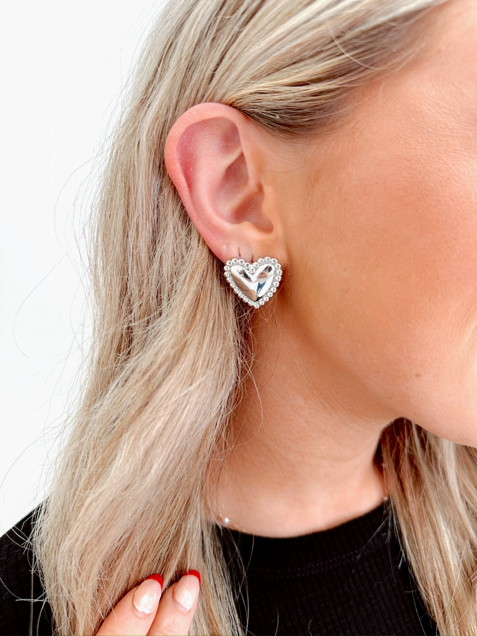 - Everyday accessories are essential to elevating your fit, and these rhodium plated heart earrings are the perfect piece to compliment your OOTD.