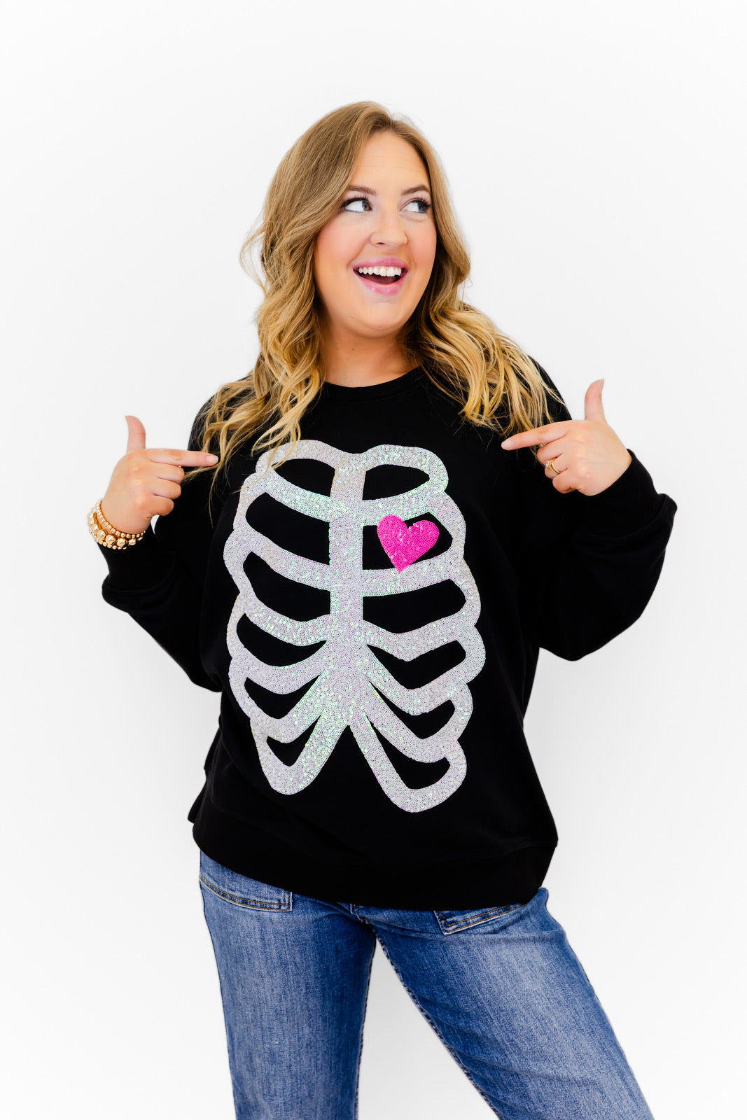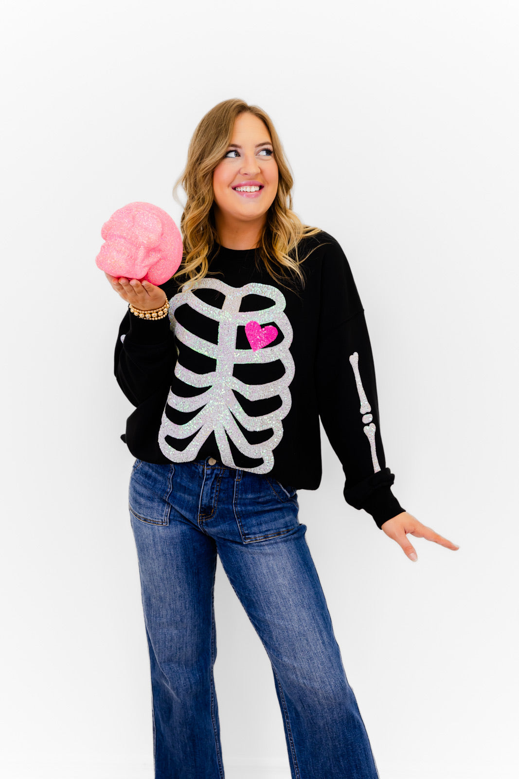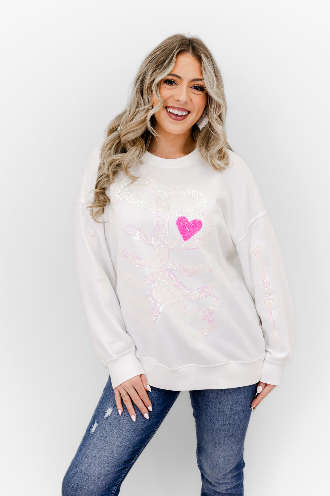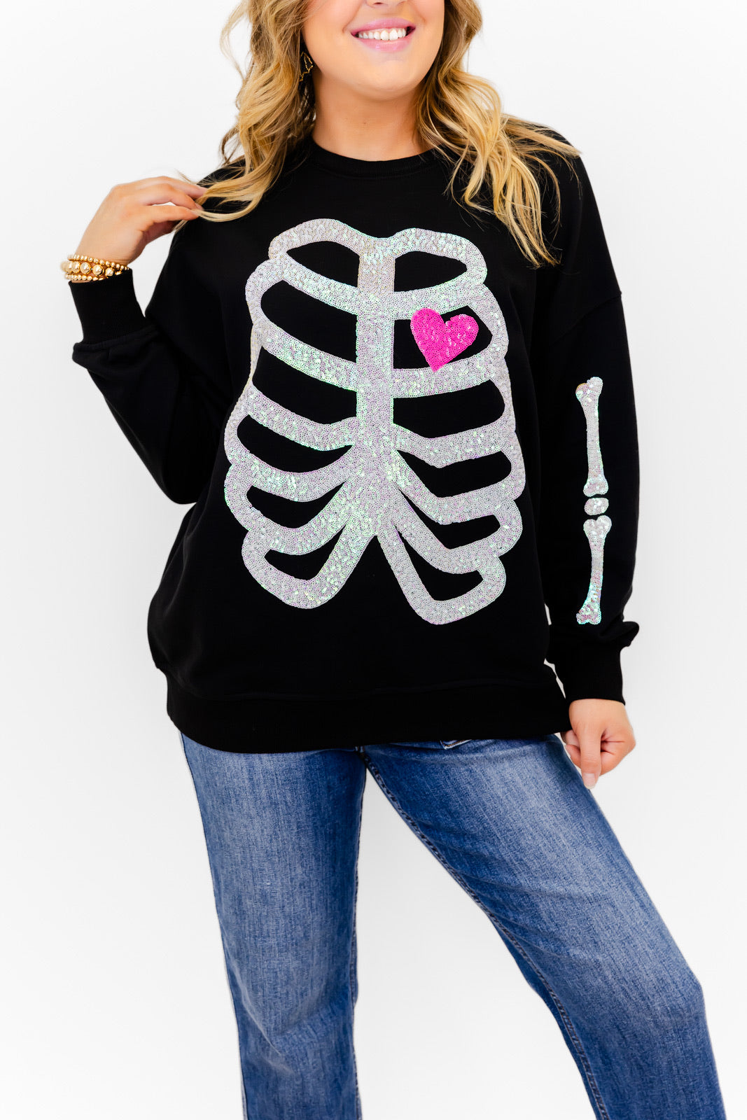 • We are so excited to offer you our very own WD exclusive design! Our Heart Skeleton Sequin Embellished Sweatshirt is so unique, girly, and so stinking cute! Style this with leggings and sneakers for a fun Halloween fit.
