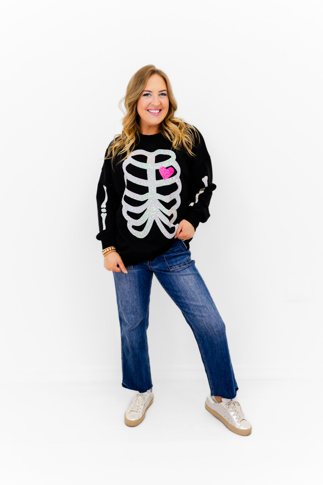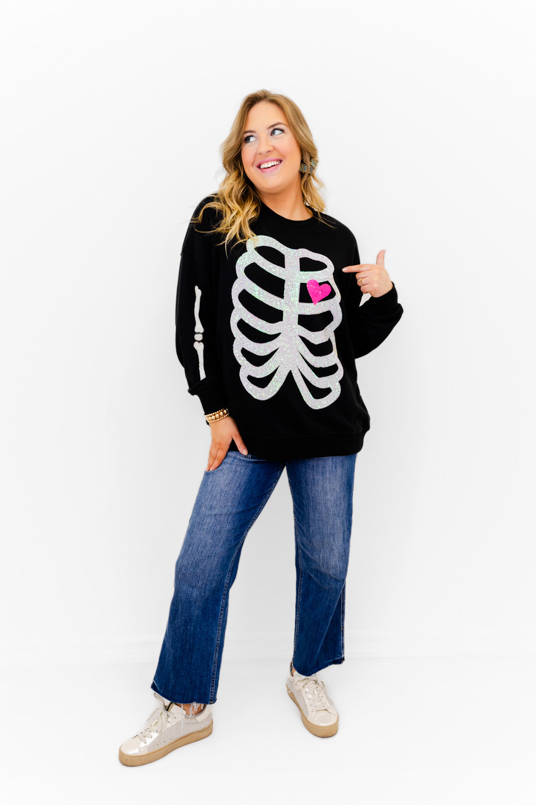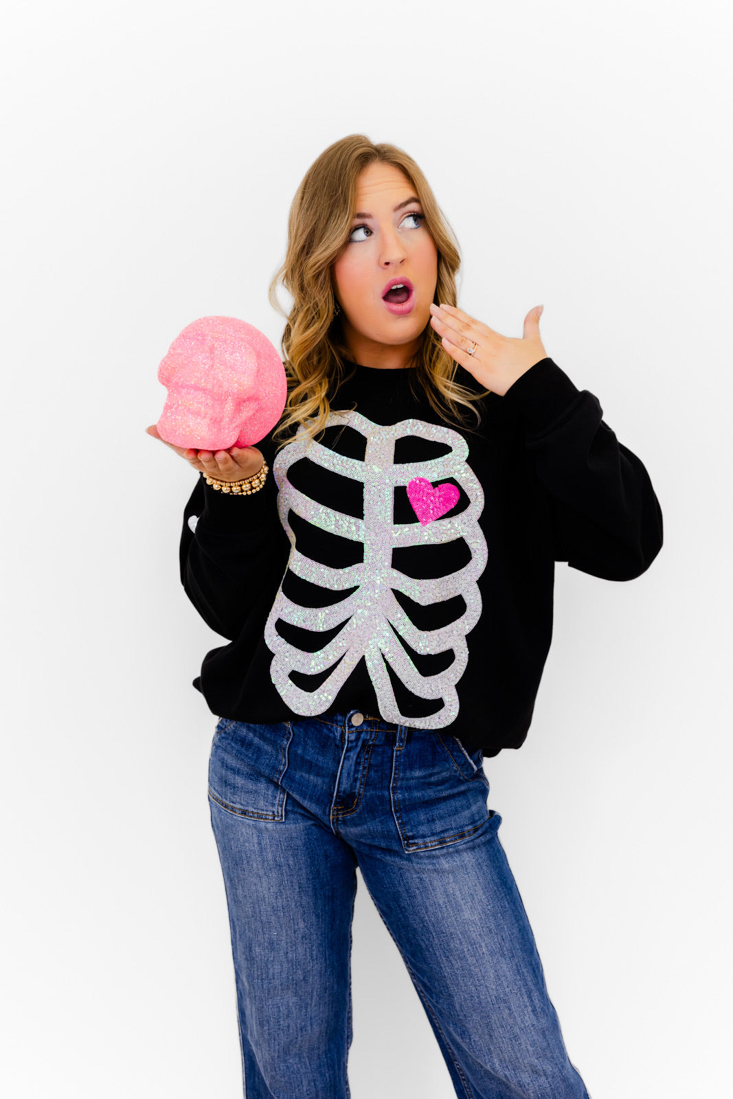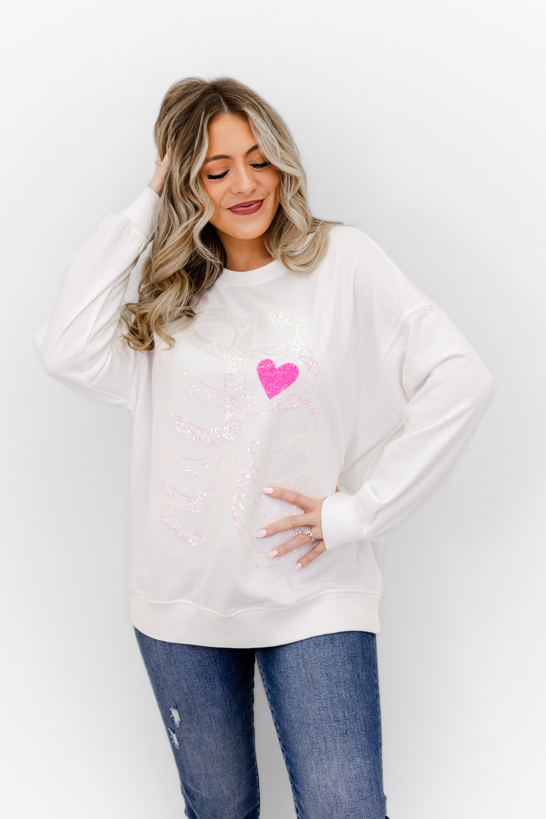• We are so excited to offer you our very own WD exclusive design! Our Heart Skeleton Sequin Embellished Sweatshirt is so unique, girly, and so stinking cute! Style this with leggings and sneakers for a fun Halloween fit.
