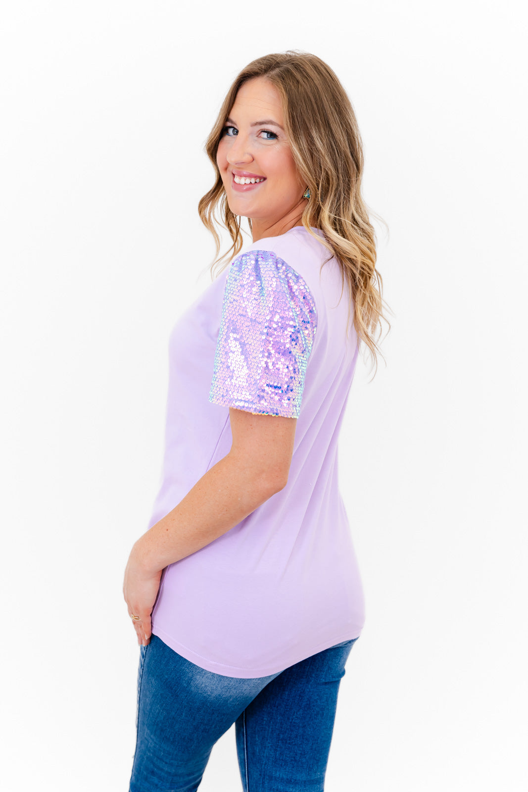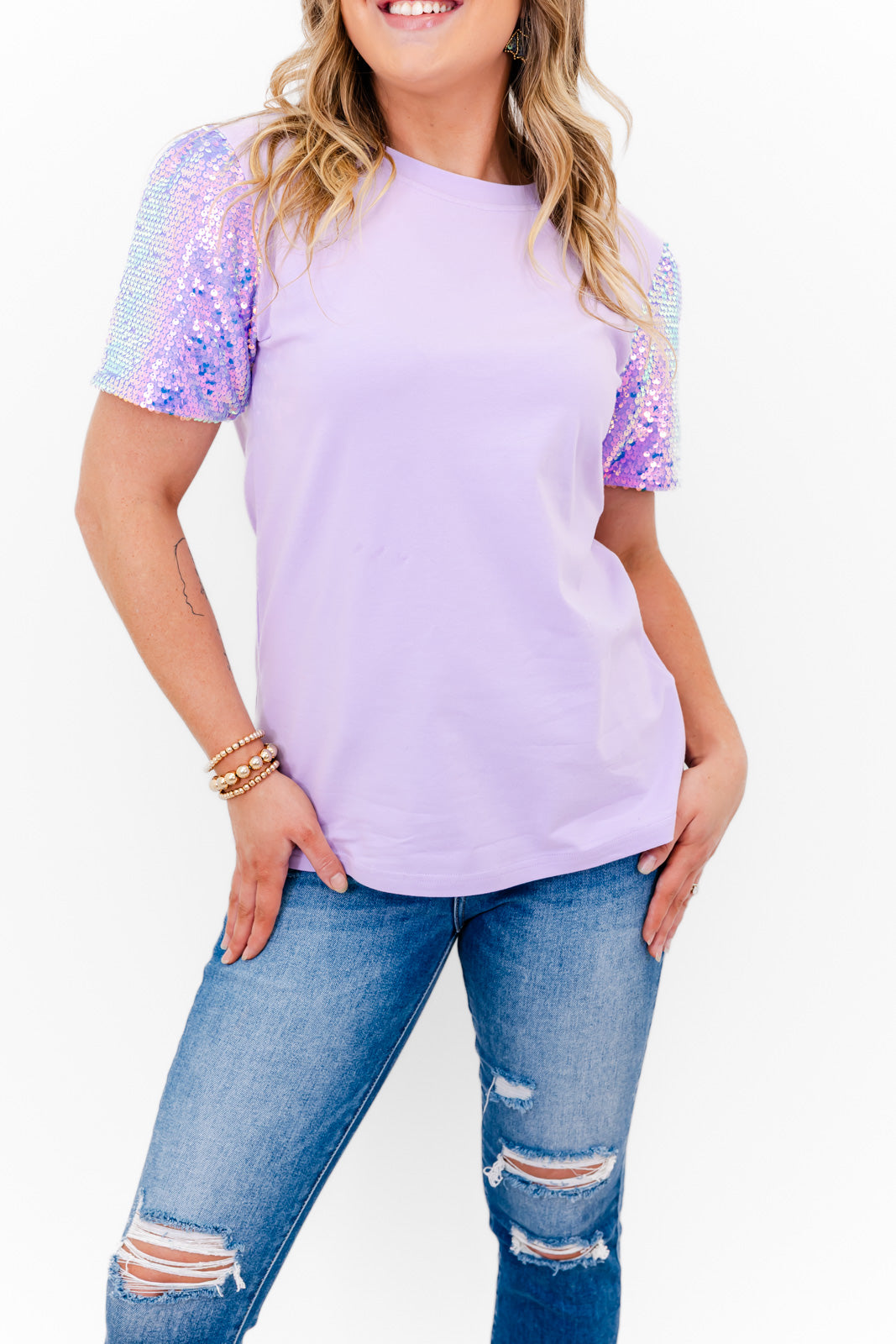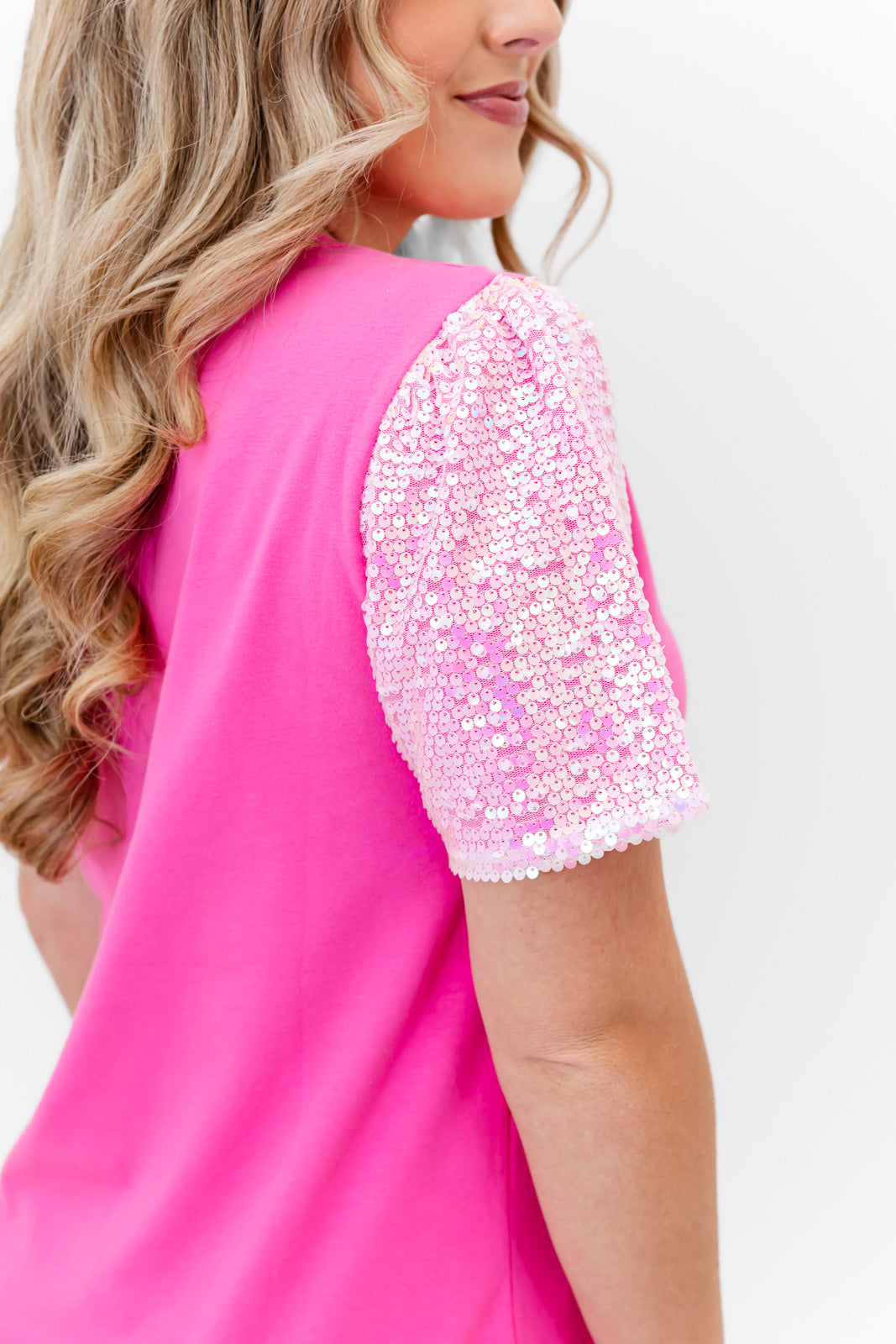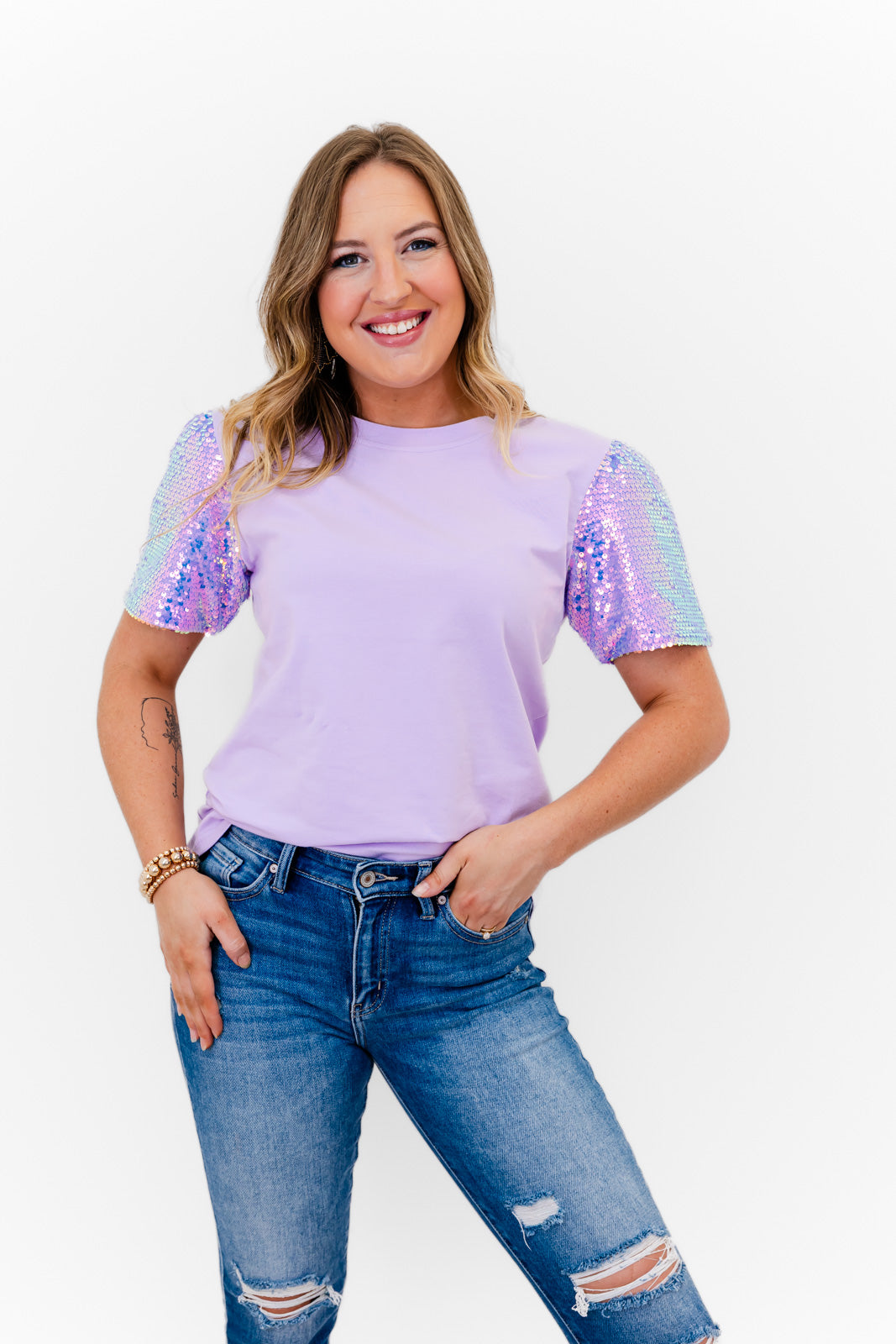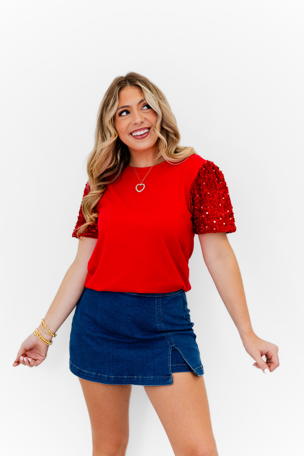 - Our Glitzy Girl Sequin Sleeve top combines classic style with a touch of sparkle courtesy of its sequin sleeves. Perfect addition to your holiday wardrobe for running around town, or a holiday party.