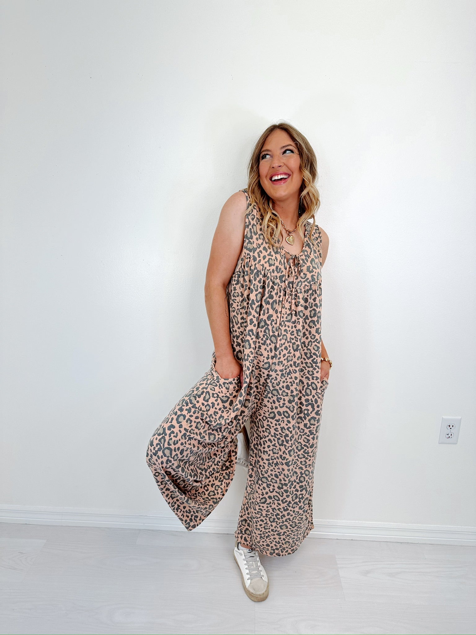 Slip into effortless style with our Freya Fierce Leopard Print Jumpsuit—a relaxed fit one-piece that’s just as comfy as it is bold. Whether you’re lounging around the house, running errands, or heading out with the girls, this jumpsuit brings all the fierce vibes with zero effort.