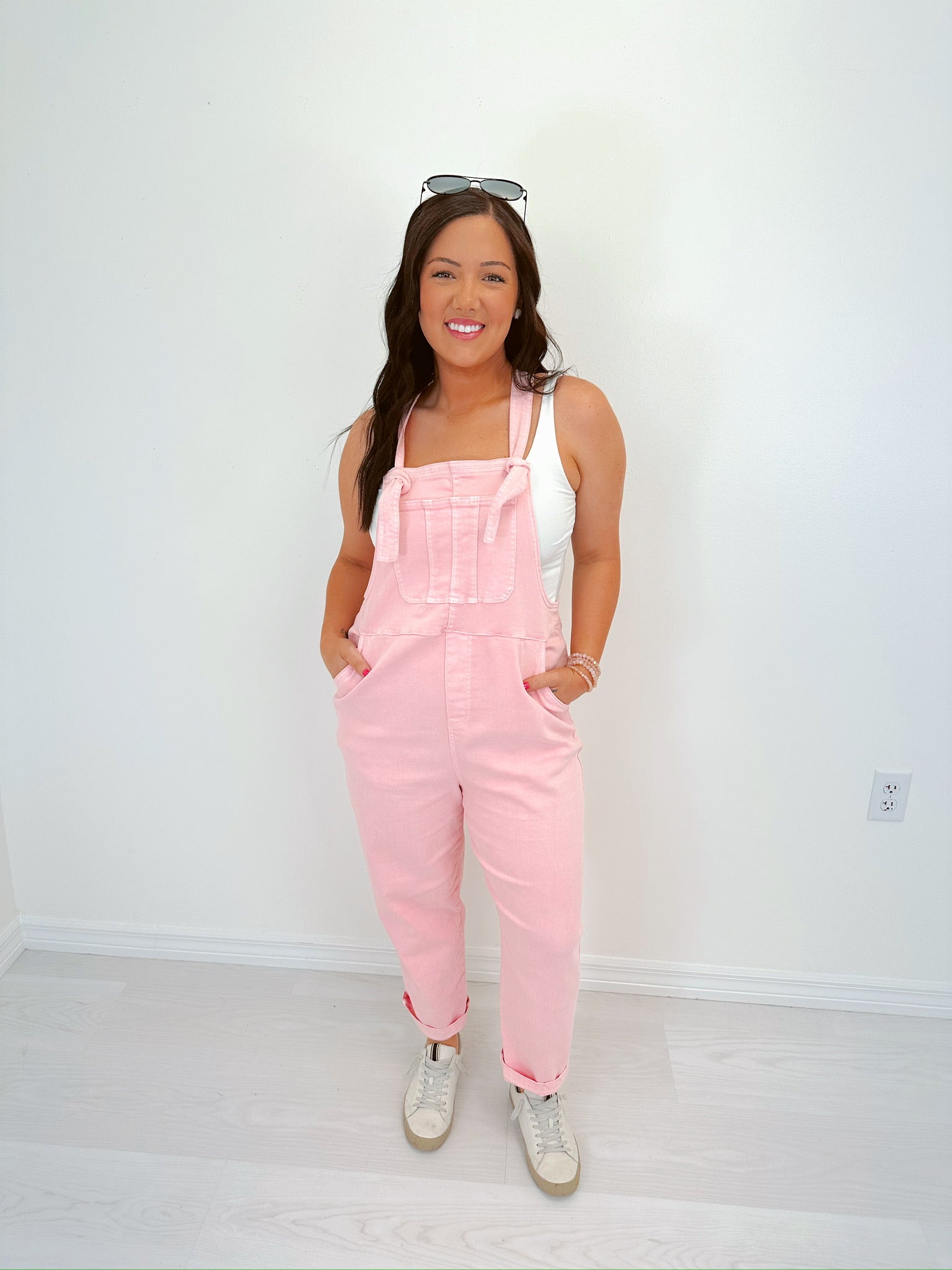 Kamryn Comfy Cropped Tie Knot Overalls - Pink