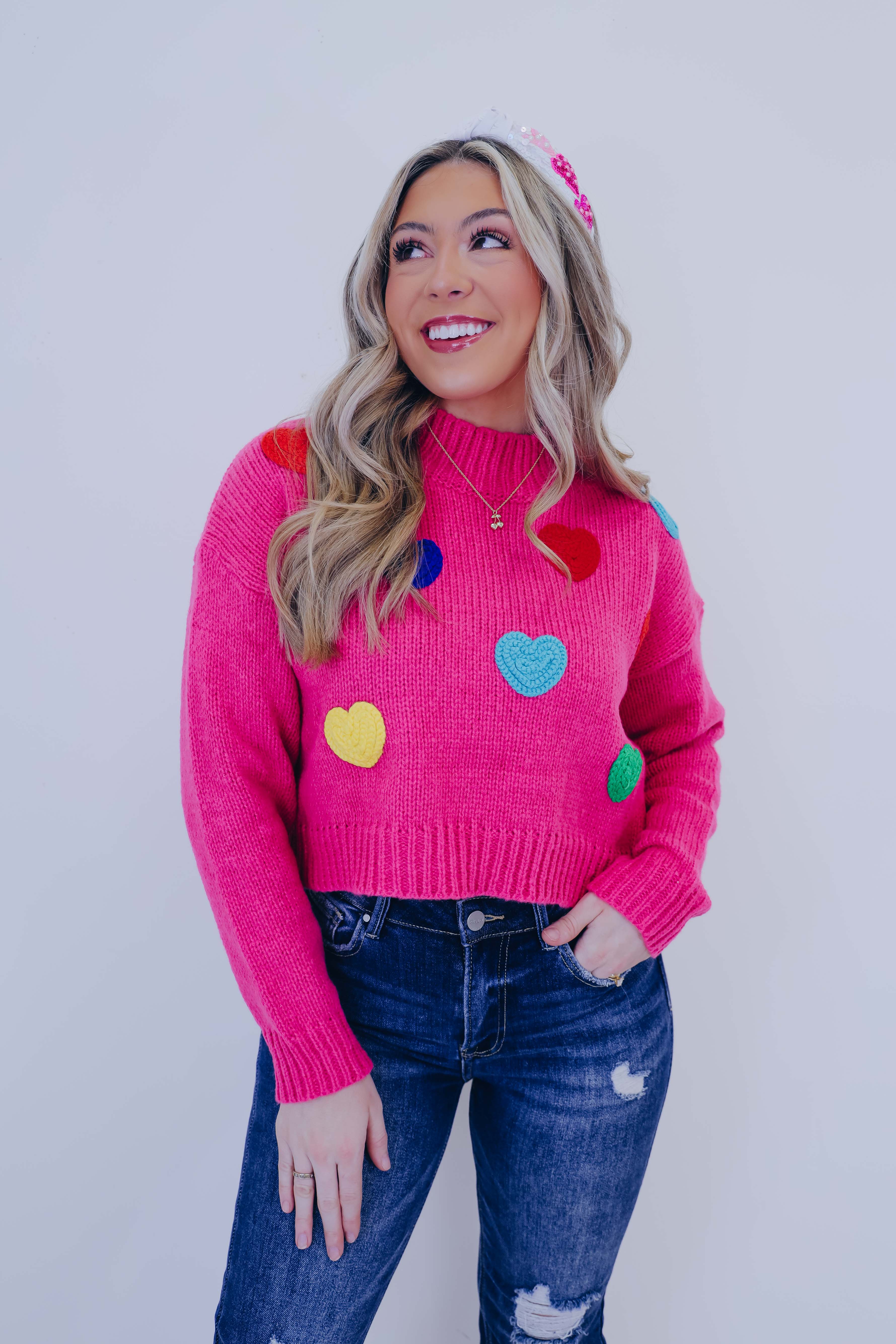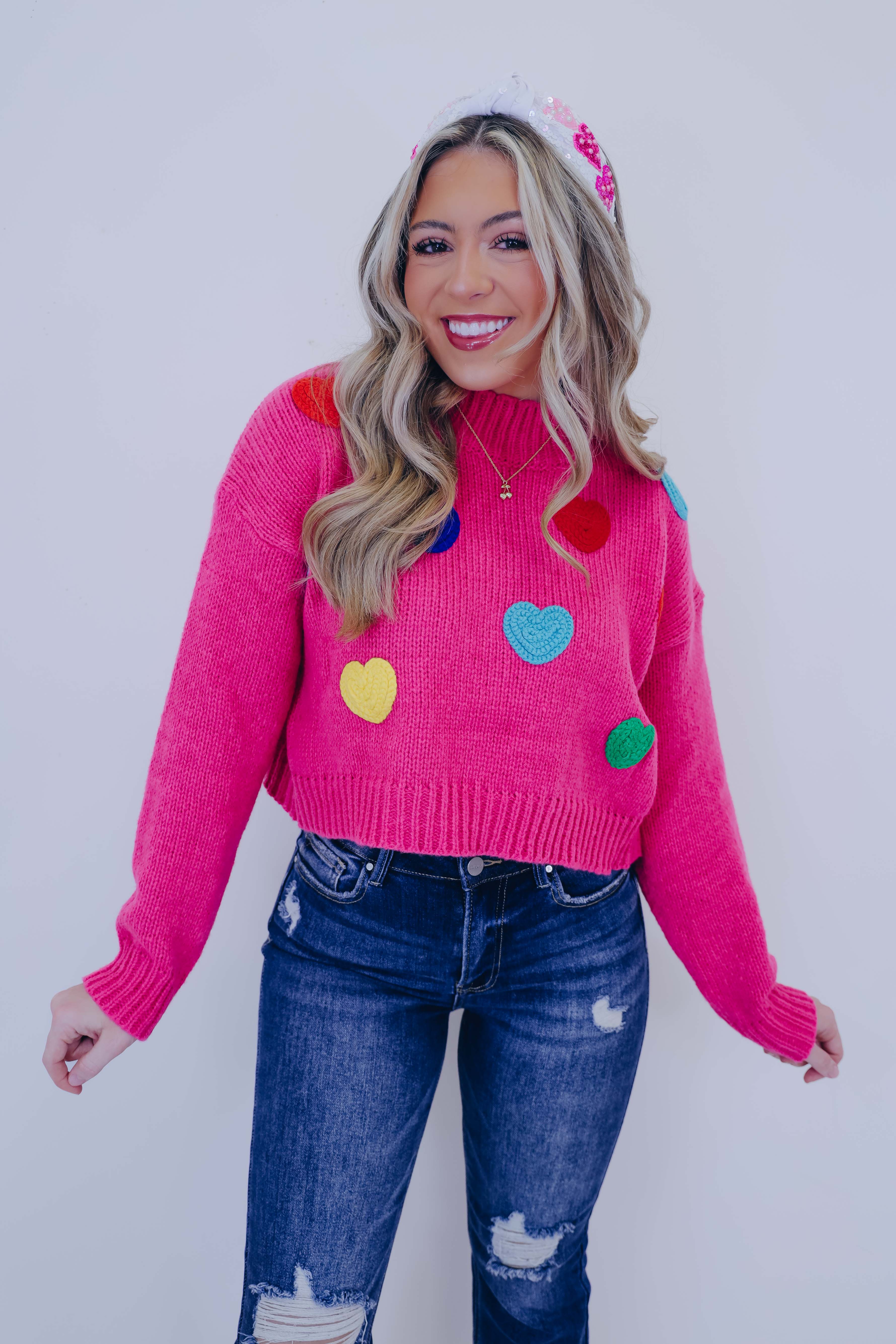 • Our Follow Your Heart Colorful Cropped Sweater is perfect for creating a super fun winter OOTD with its playful mix of colors and sassy vibes. Stay cozy while making a bold statement by styling this cutie with your fav flare jeans and wedge heels.