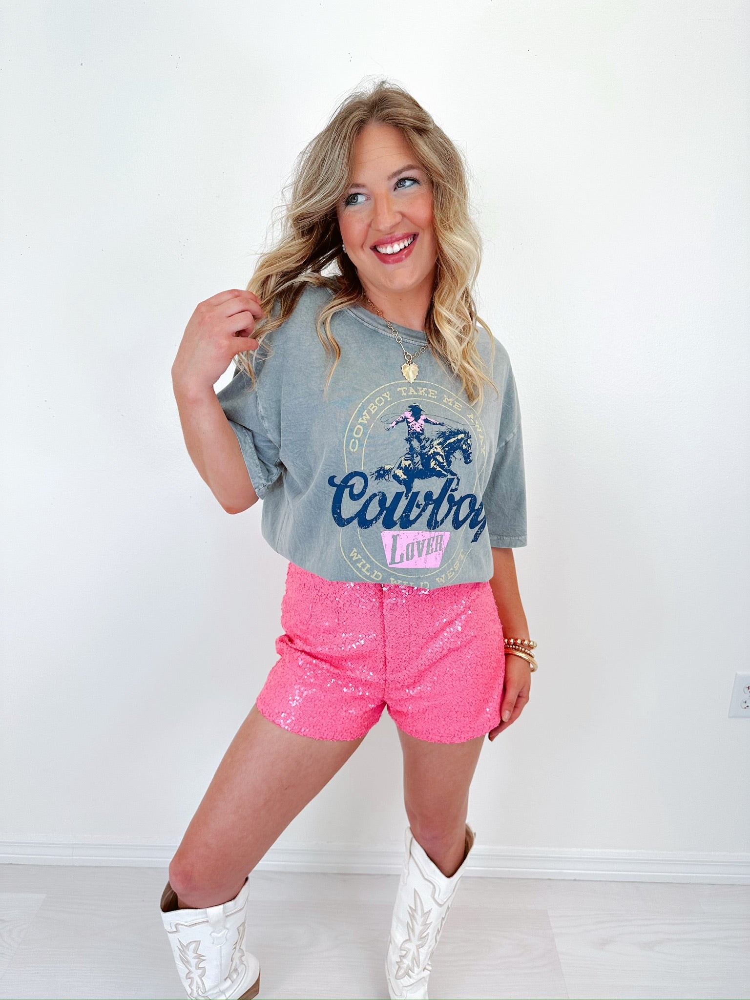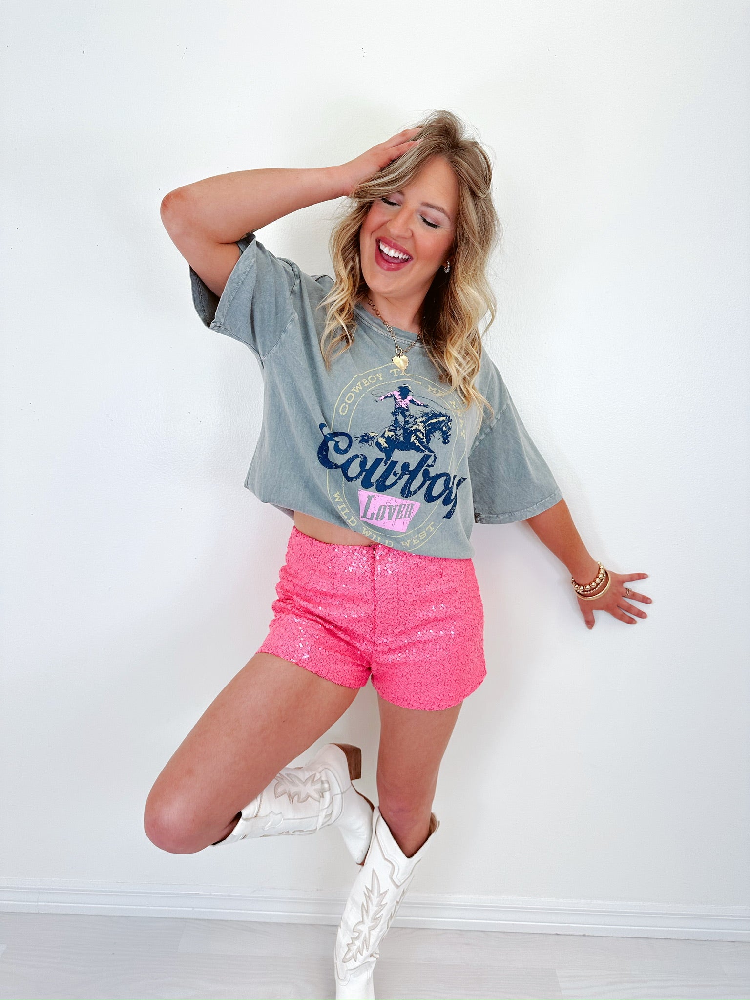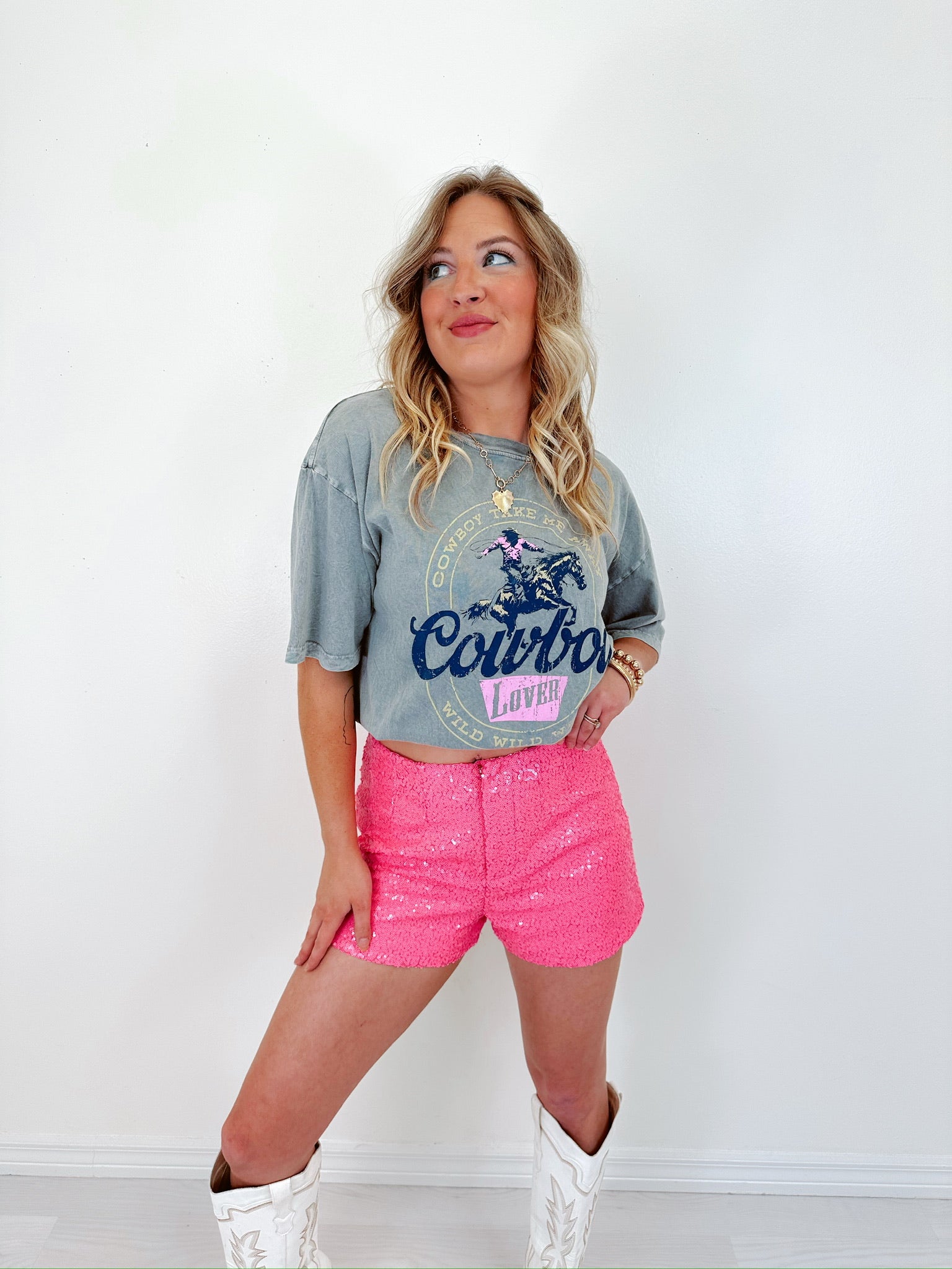 Our Hot Shot Sequin Shorts are statement-makers that will turn heads and steal the spotlight. These sparkly must haves are made for nights out, festivals, or any time you want to shine. Pair with a crop top and heels for a full glam vibe, or go edgy with a graphic tee and boots.