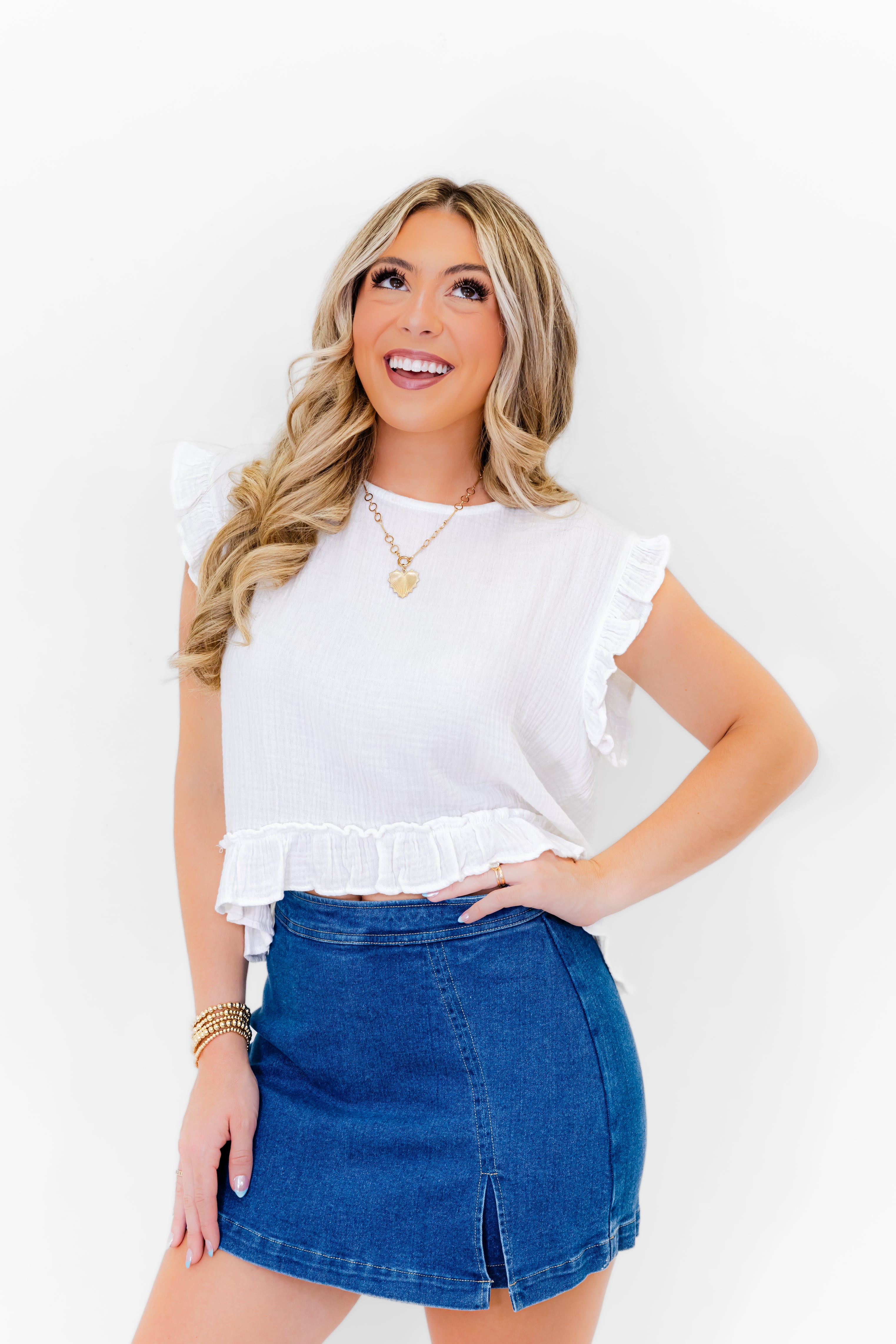 - Super trendy, comfy, and cute, our Sadie Side Slit Denim Mini Skort is a summer must. Pair it with your fav western graphic tee and boots for a rodeo or concert fit, or create a cute brunch worthy look by styling with a floral top and sandals.