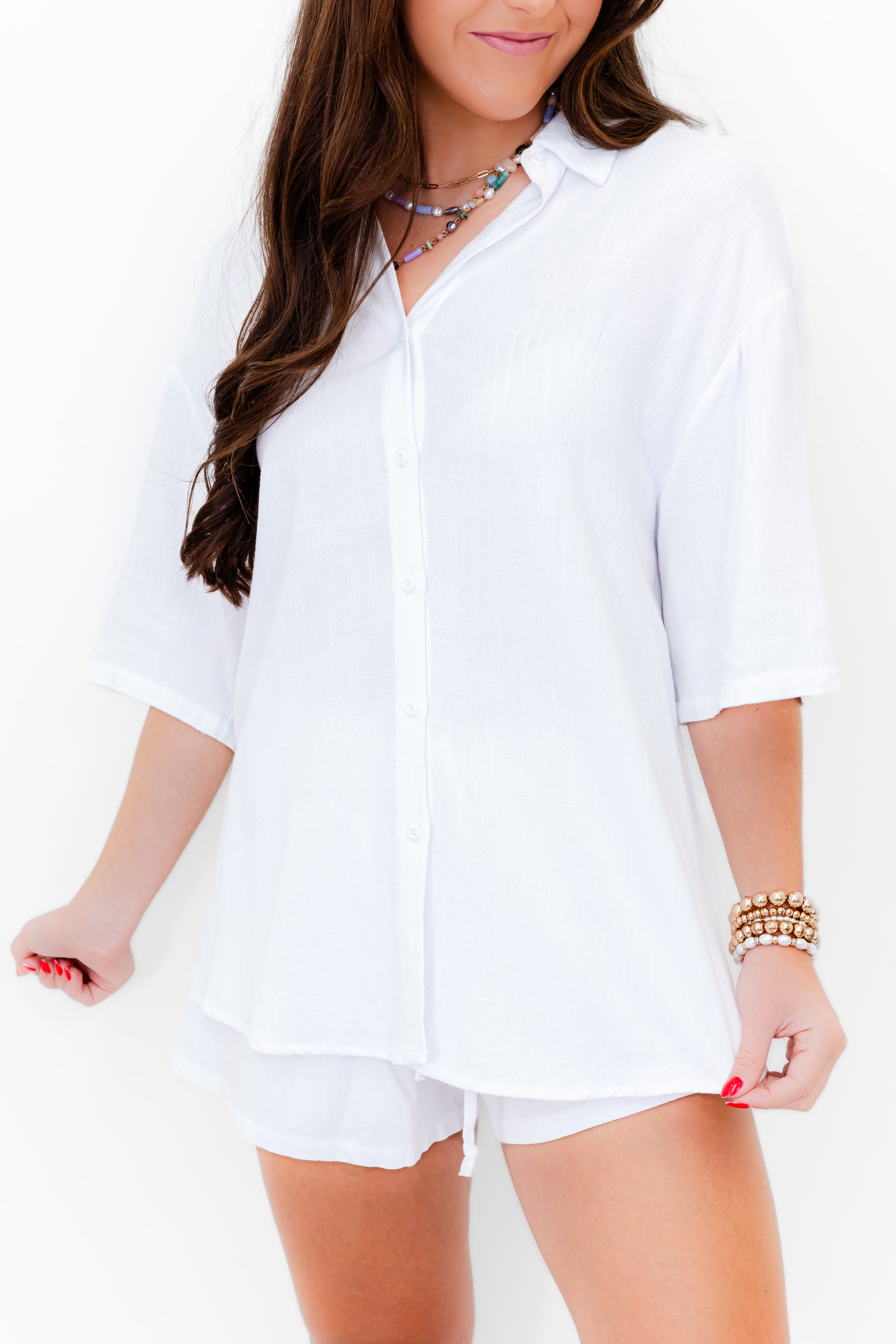 Our Seabreeze Button Front Short Set is light, effortless, and made for summer days. This easygoing duo features a breezy short sleeve button-up paired with relaxed linen shorts, perfect for beach days, brunch by the water, or laid-back weekends. Style it with sandals and your fav sunnies for a super trendy OOTD.
