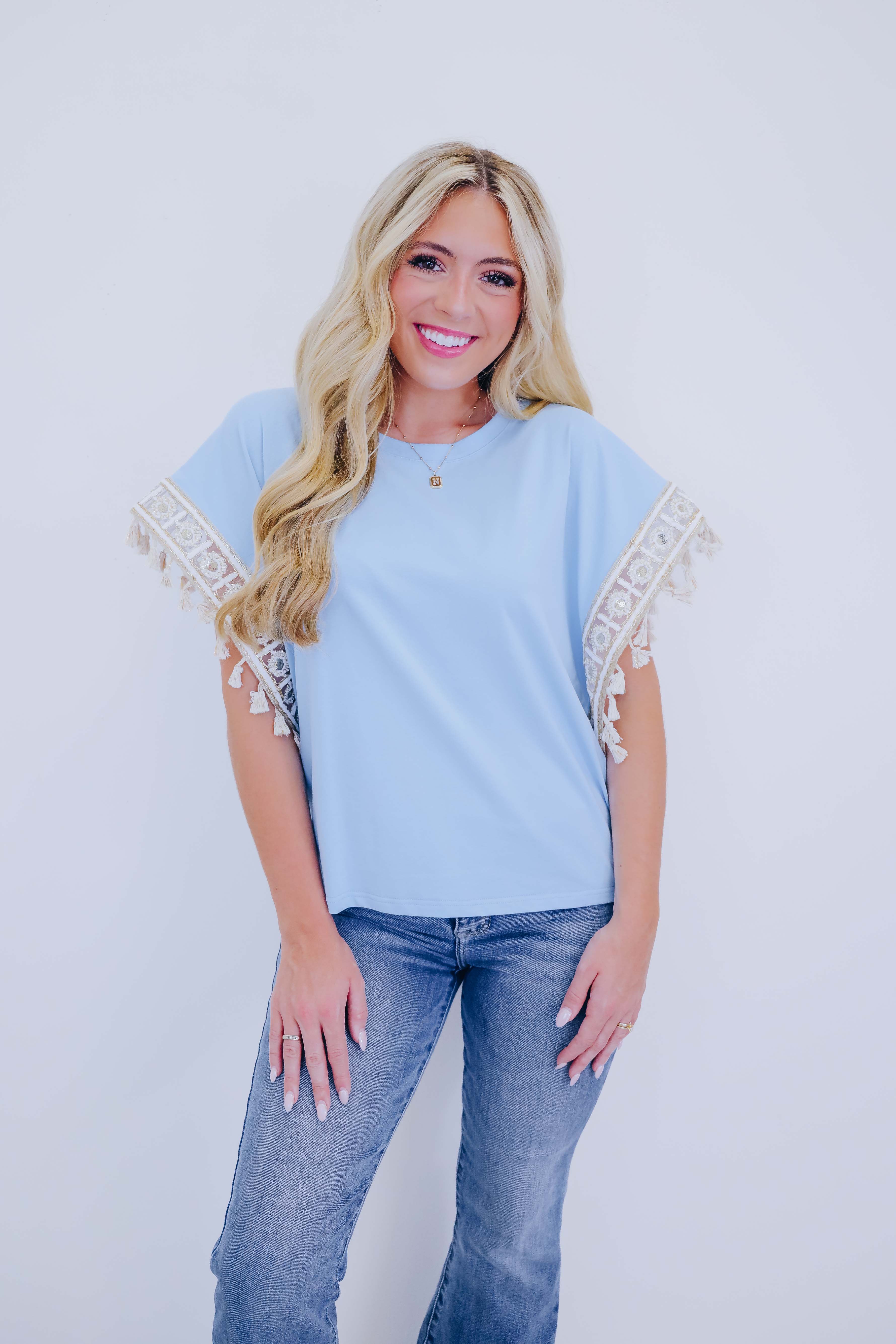 Our Amelia Embroidered Tassel Trim Top exudes a chic classy vibe that can be effortlessly styled for any occasion. Its comfy boxy design pairs perfectly with your favorite bottoms, creating a stylish option for a trendy OOTD.