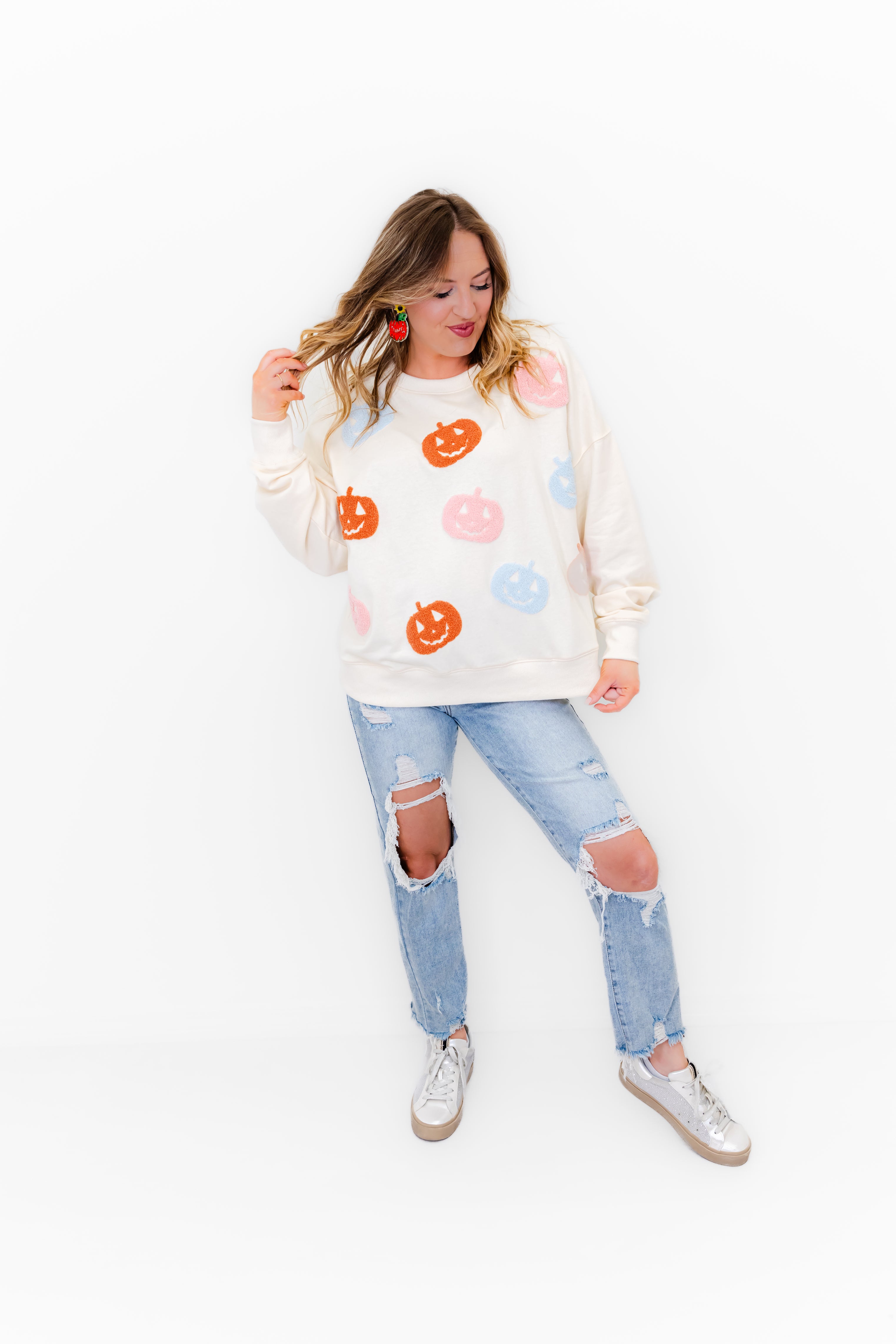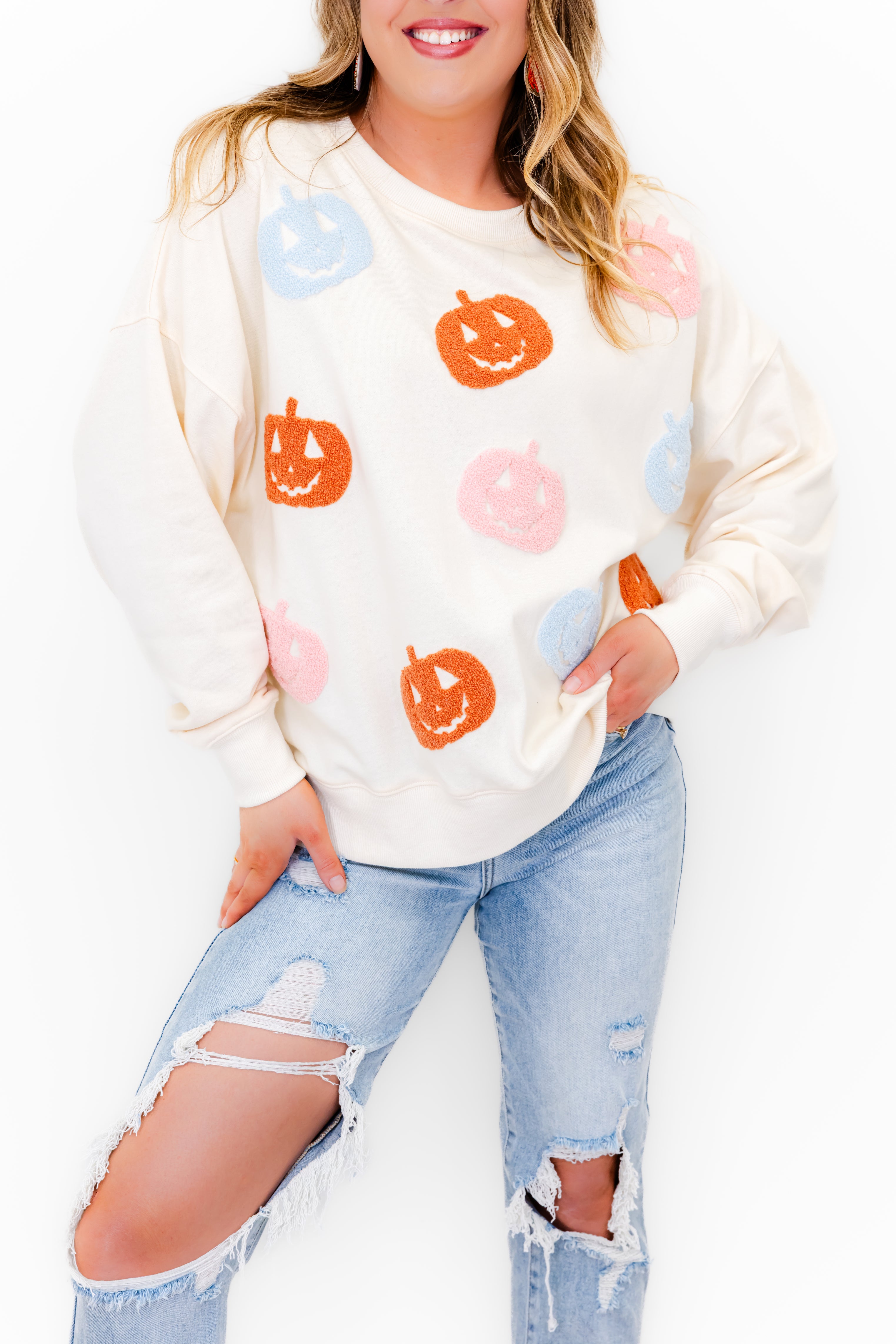 Chenille Pastel Pumpkin Patch Sweatshirt
