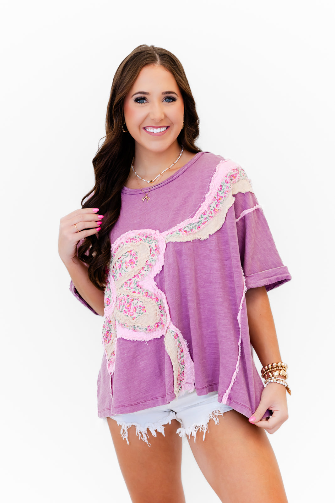 Oversized, cozy, and full of boho charm, our Quilted Floral Patch Oversized Top is made for casual days. With its quilted texture and sweet vintage-inspired details, it’s the perfect statement piece to elevate your comfy OOTD. Add your fav denim and a messy bun for a carefree boho vibe.