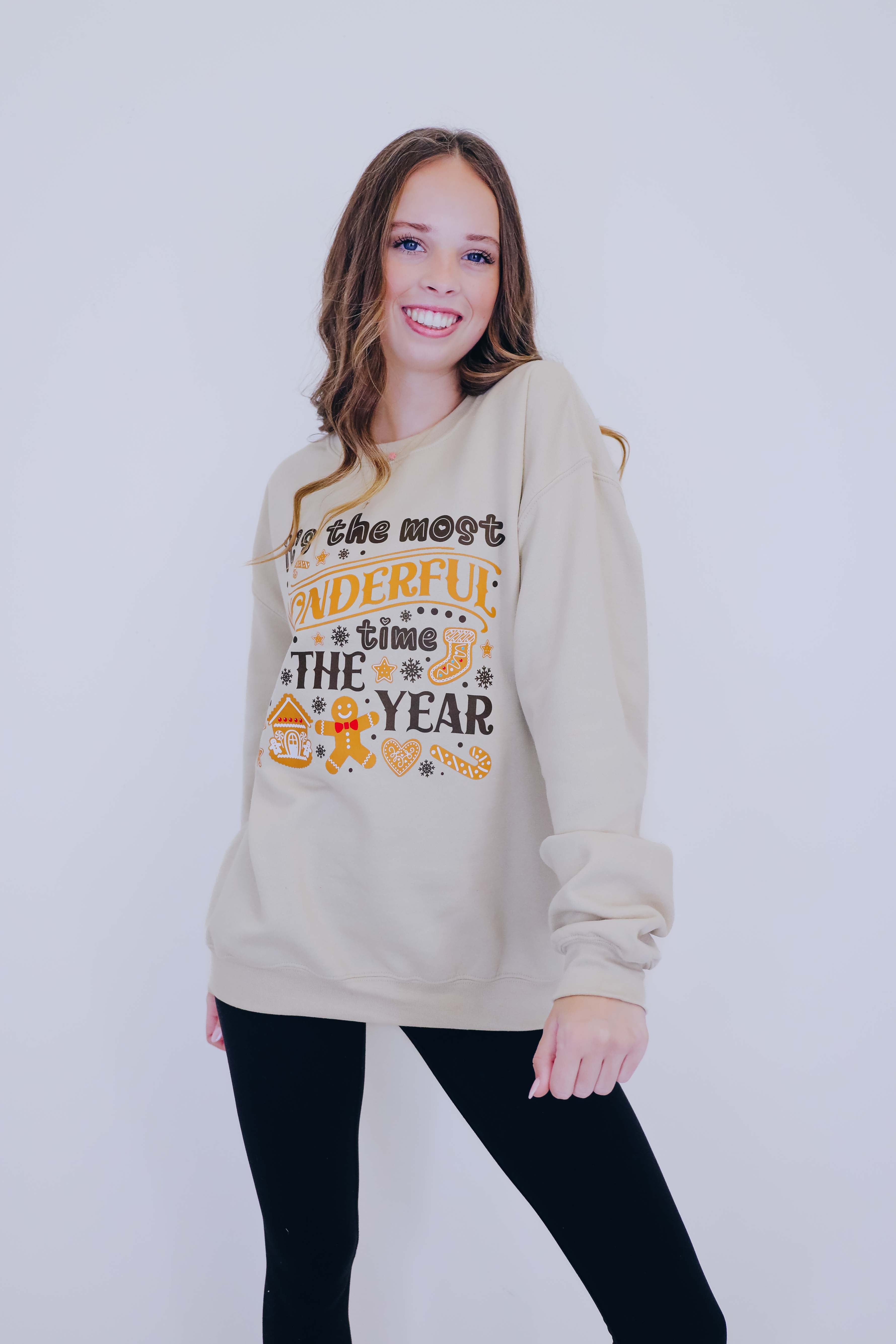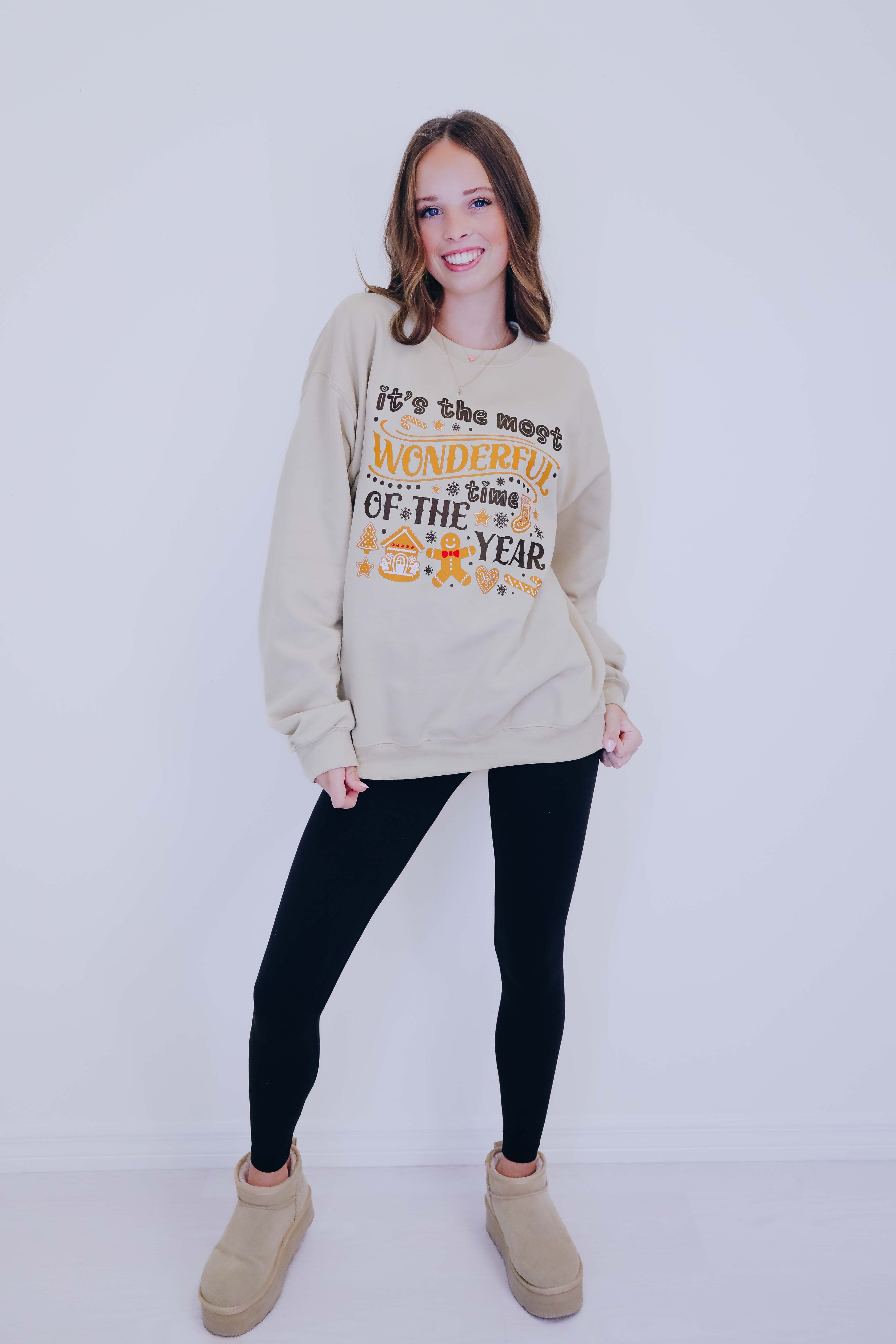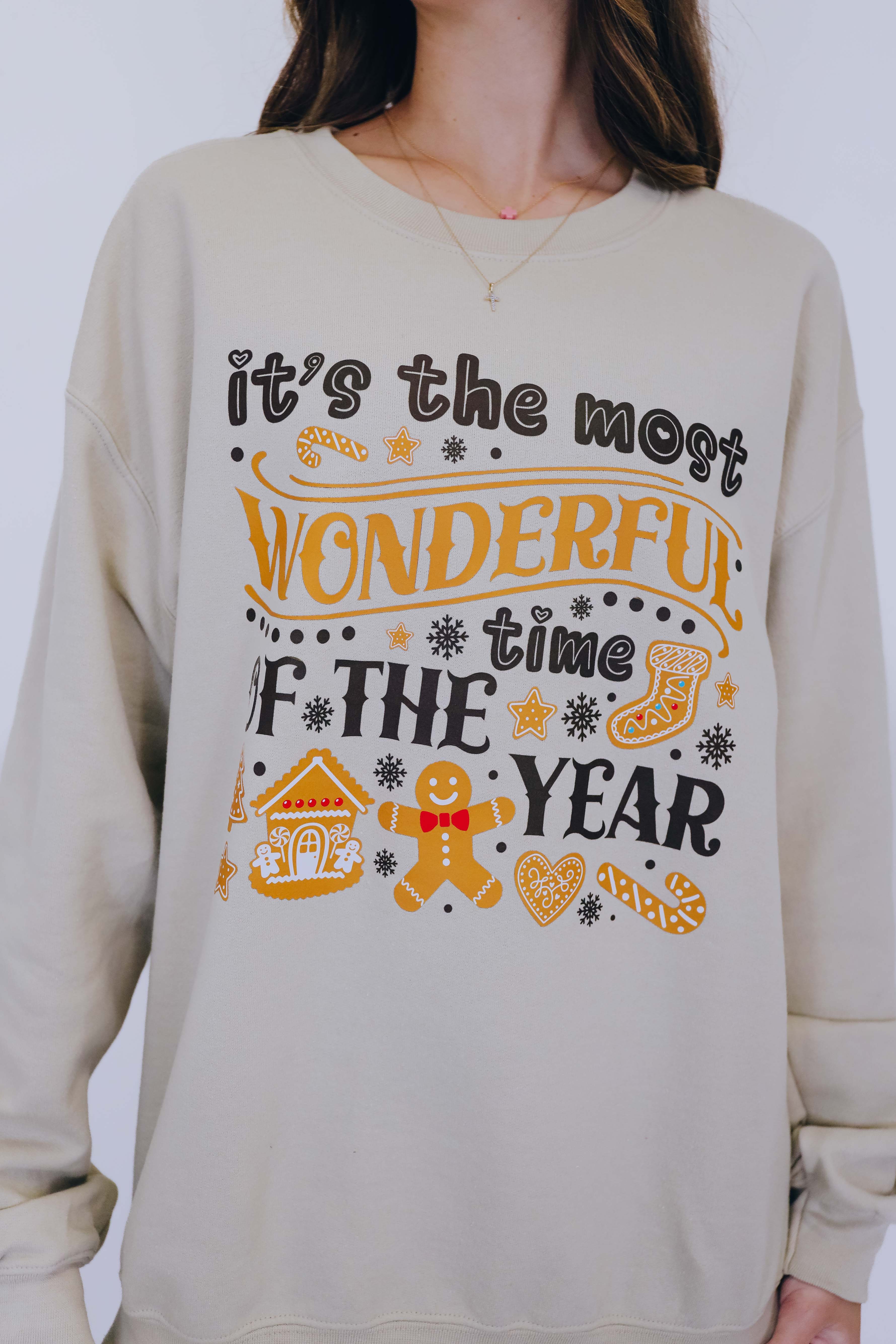 - Get into the holiday spirit with our It's The Most Wonderful Time Of The Year Cookies Graphic Sweatshirt.This sweater is perfect for pairing with boots and jeans for a cozy and stylish look.