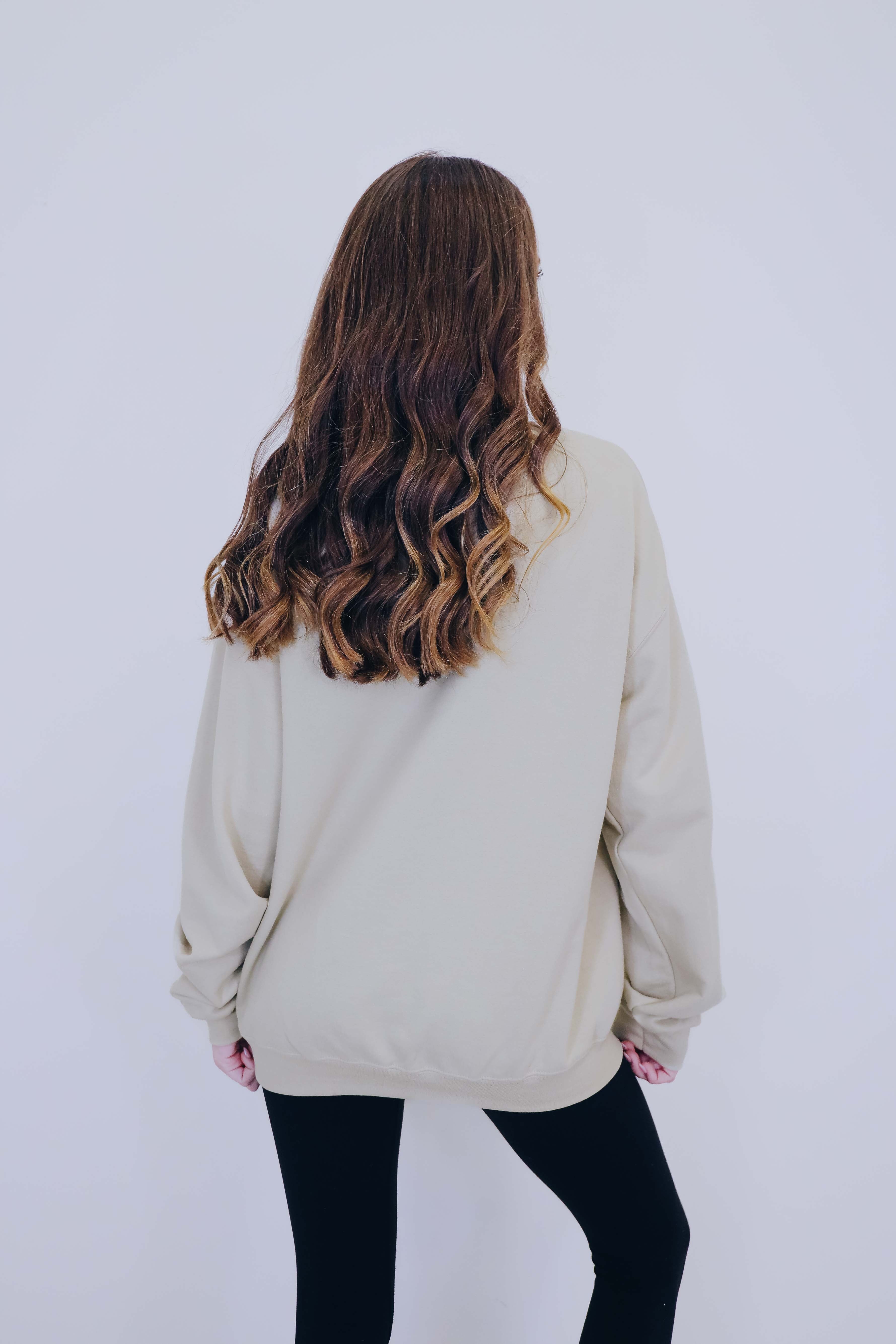 - Features a Gildan poly-cotton sweatshirt, crew neck, long sleeves, graphics include gingerbread houses, trees, candy canes, and stockings with light and dark brown writing saying " Its the most wonderful time of the year".