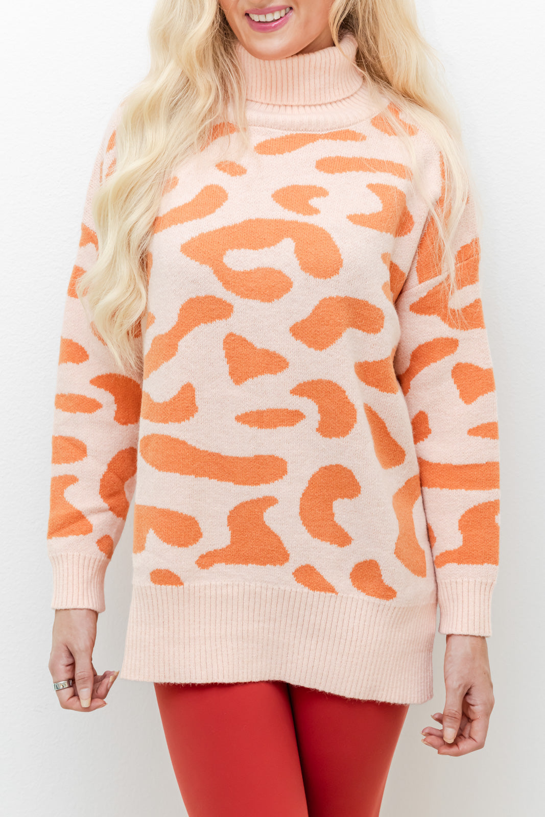 - Elevate your style with our Luka Leopard Print Mock Neck Sweater, an essential for any fall/winter wardrobe. Versatile and trendy, this sweater can be effortlessly dressed up or down for a variety of occasions. Pair it with leggings for a chic OOTD, or dress it up with slacks for a comfortable, yet professional 9-5 fit.