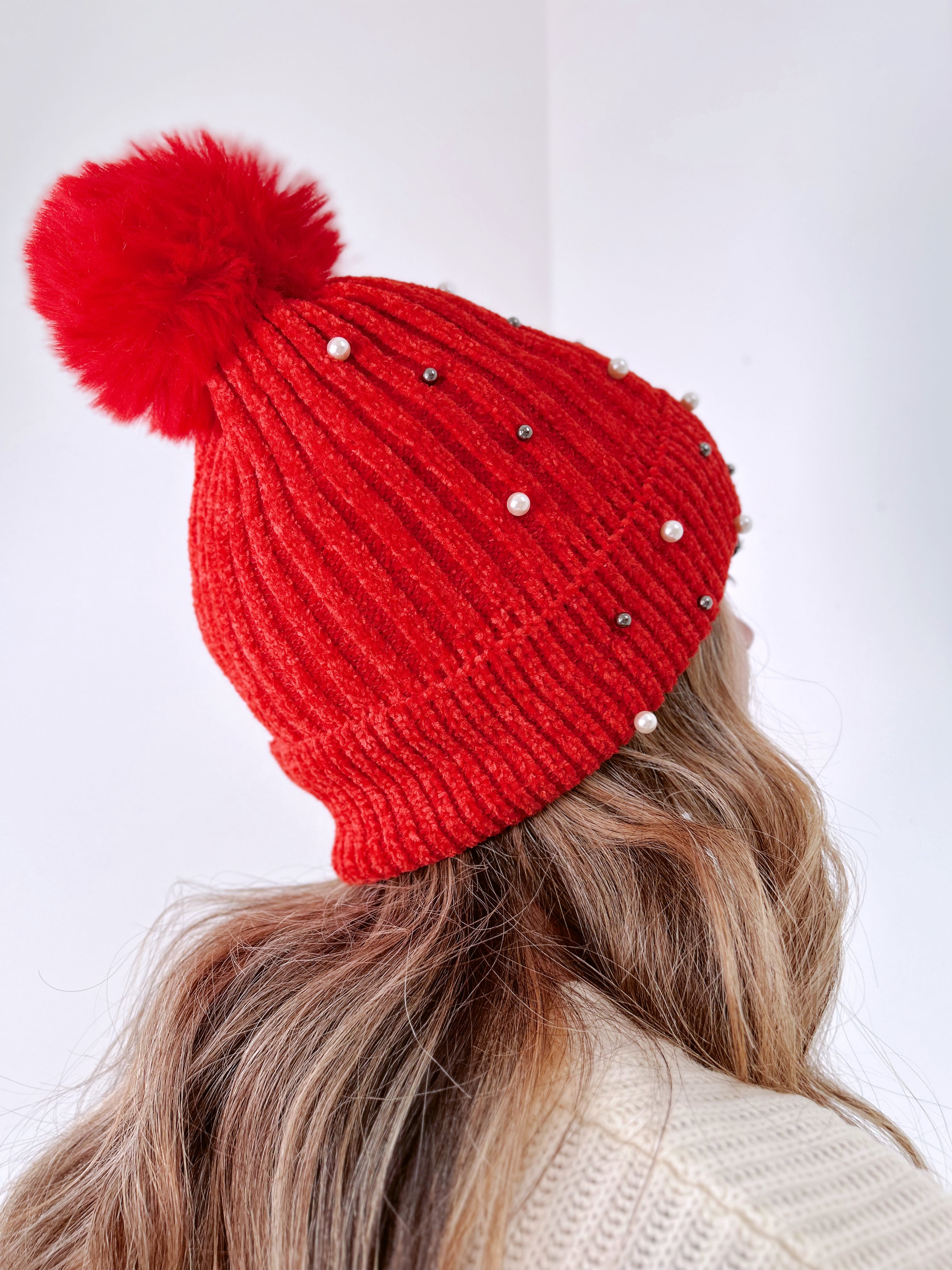 - Our Pearla Adorned Pom Beanie is a must have accessory this season! This pom beanie will elevate your style for a bold, trendy look.