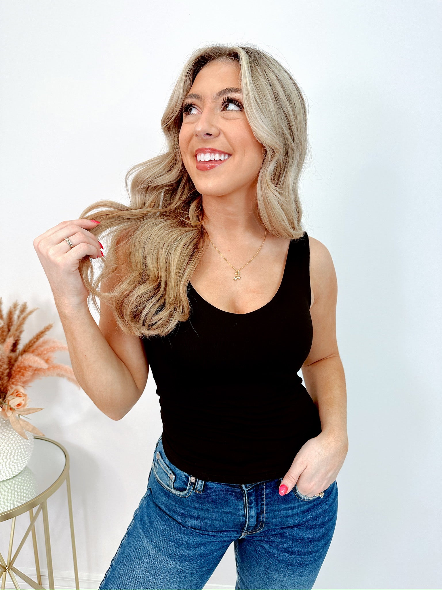 - The Veronica V-Neck Tank combines softness and coverage with a double-layer of fabric, making it ideal for all-day comfort. This tank is a versatile piece that can be worn for layering under a top or shacket, or on its own with your favorite denim.